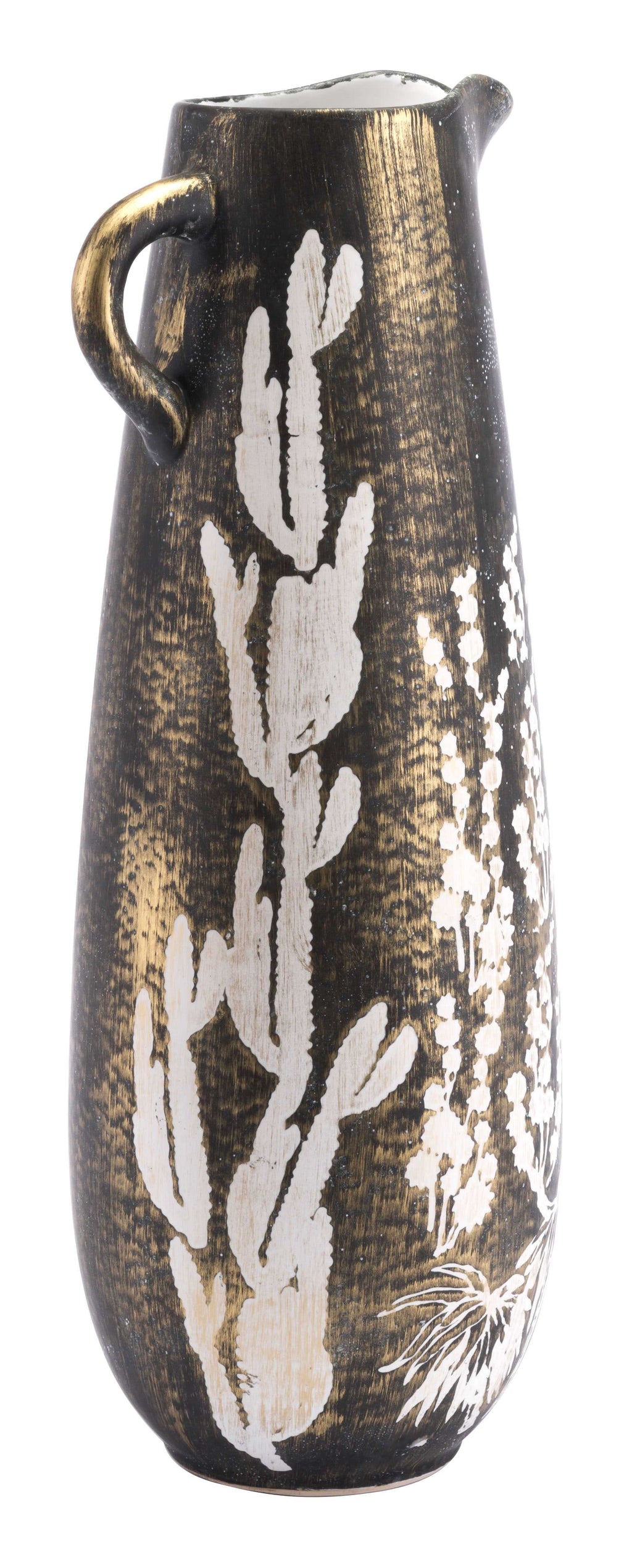 9.8" x 8.7" x 23.6" Antique Gold & White, Ceramic, Large Jar