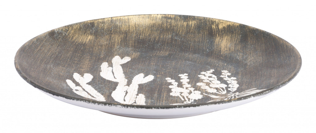 17.9" x 17.9" x 2.4" Antique Gold & White, Ceramic, Large Plate