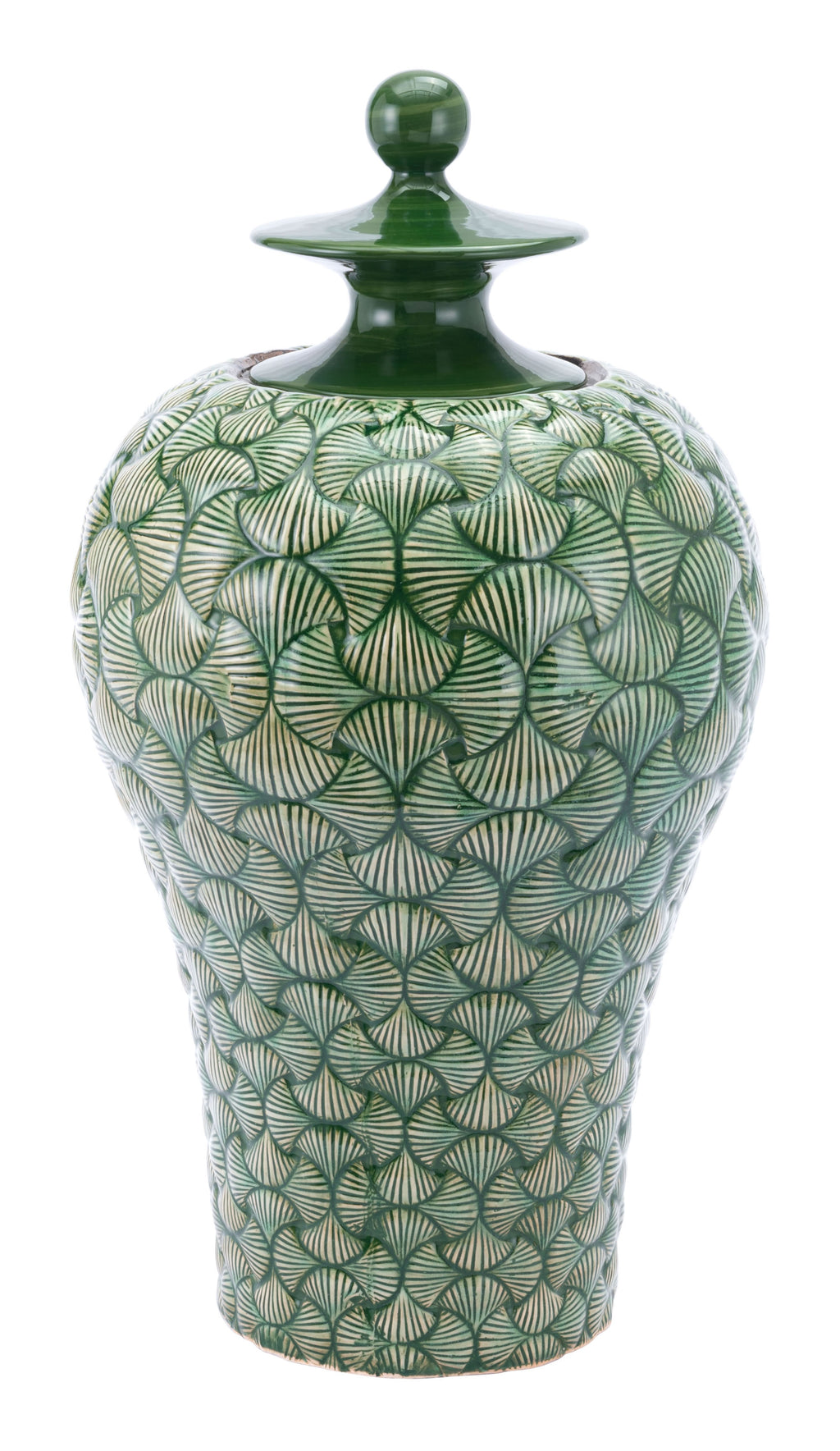 16.9" x 16.9" x 30.7" Green, Ceramic, Large Temple Jar