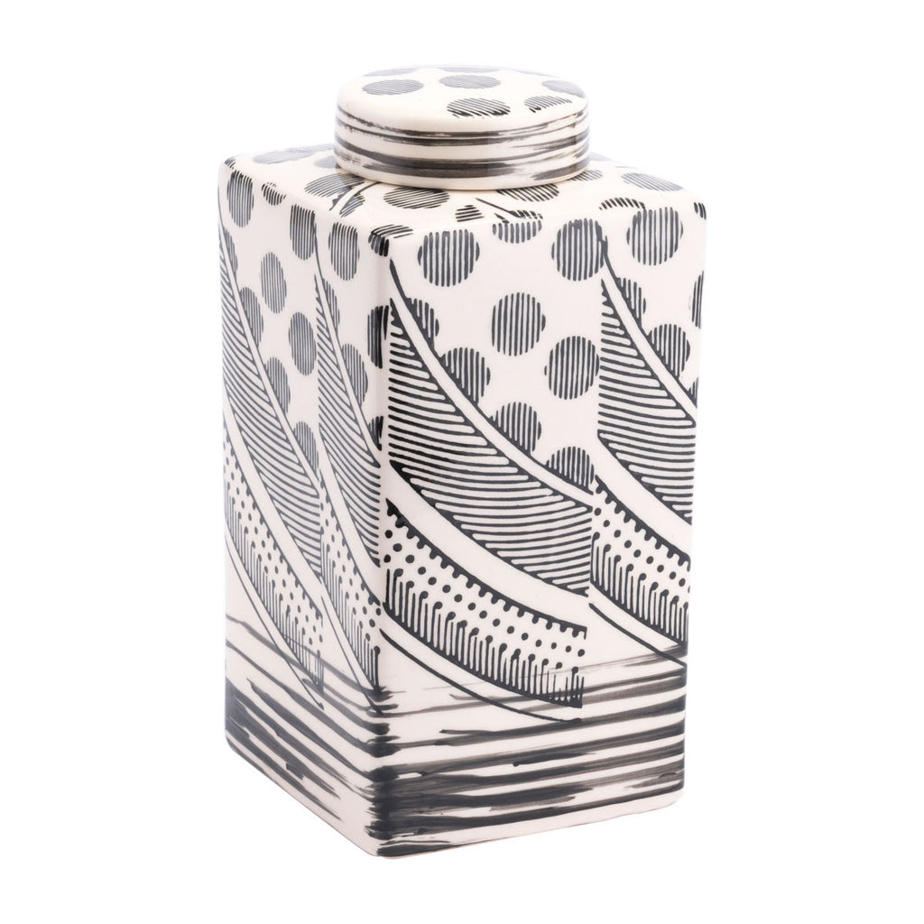 5.9" x 5.9" x 11.4" Off White & Black, Ceramic, Medium Jar