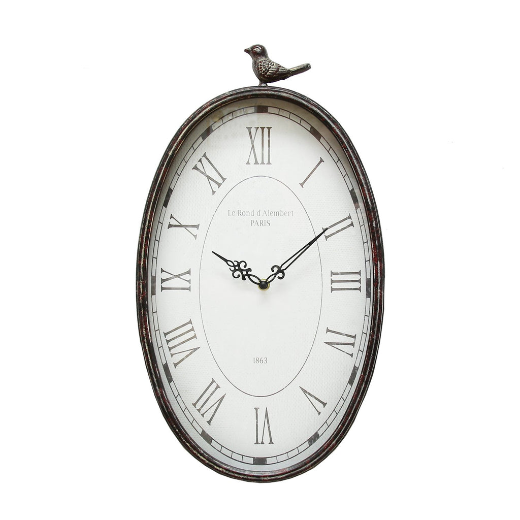 10.75" Oval Distressed Gunmetal Antique Bird Clock