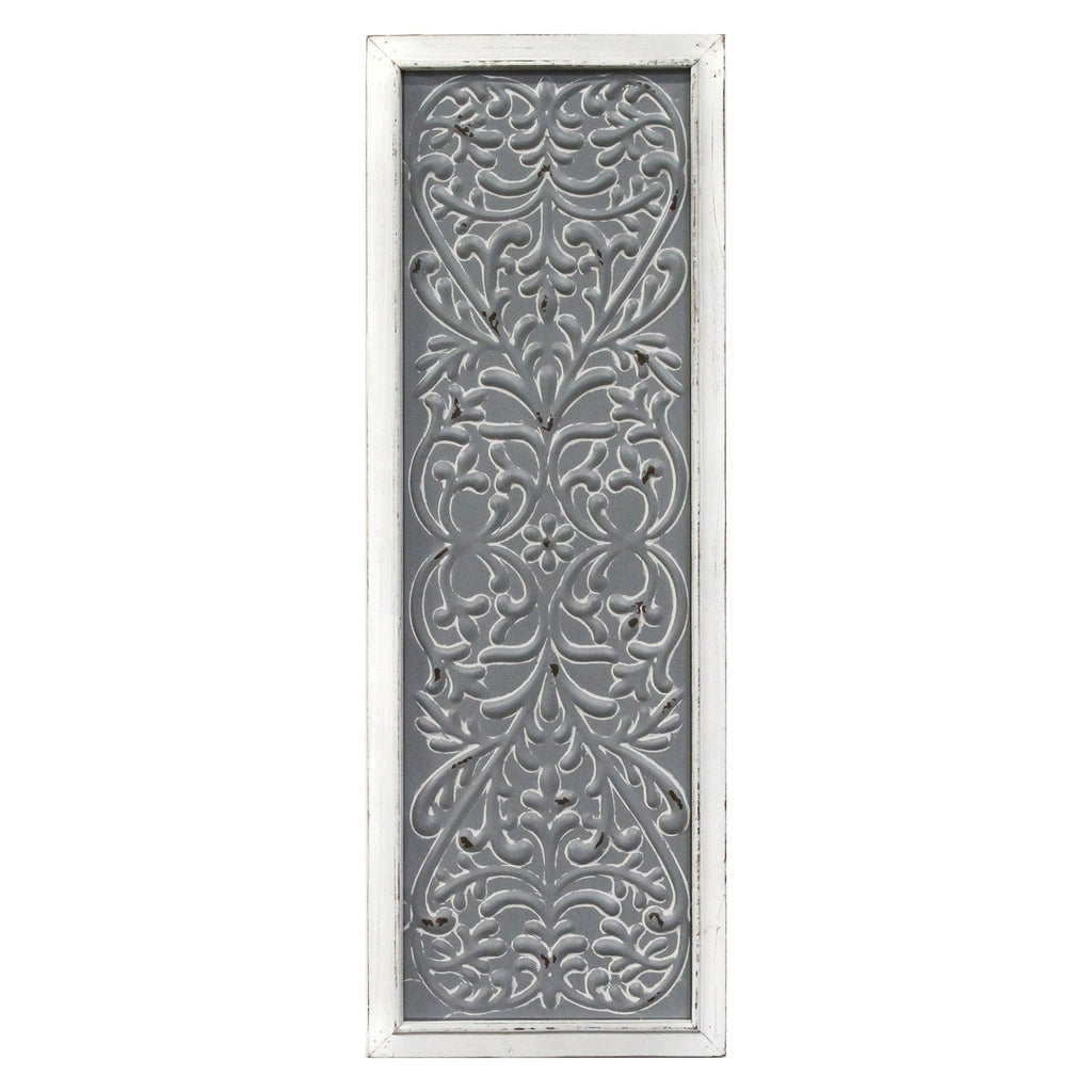 Distressed Gray Metal Embossed Wood Wall Decor