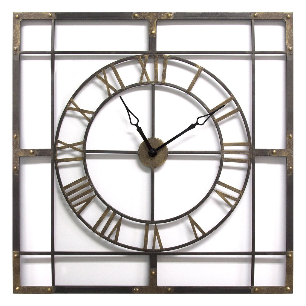 Square Distressed Wood and Metal Wall Clock with Vintage Touch