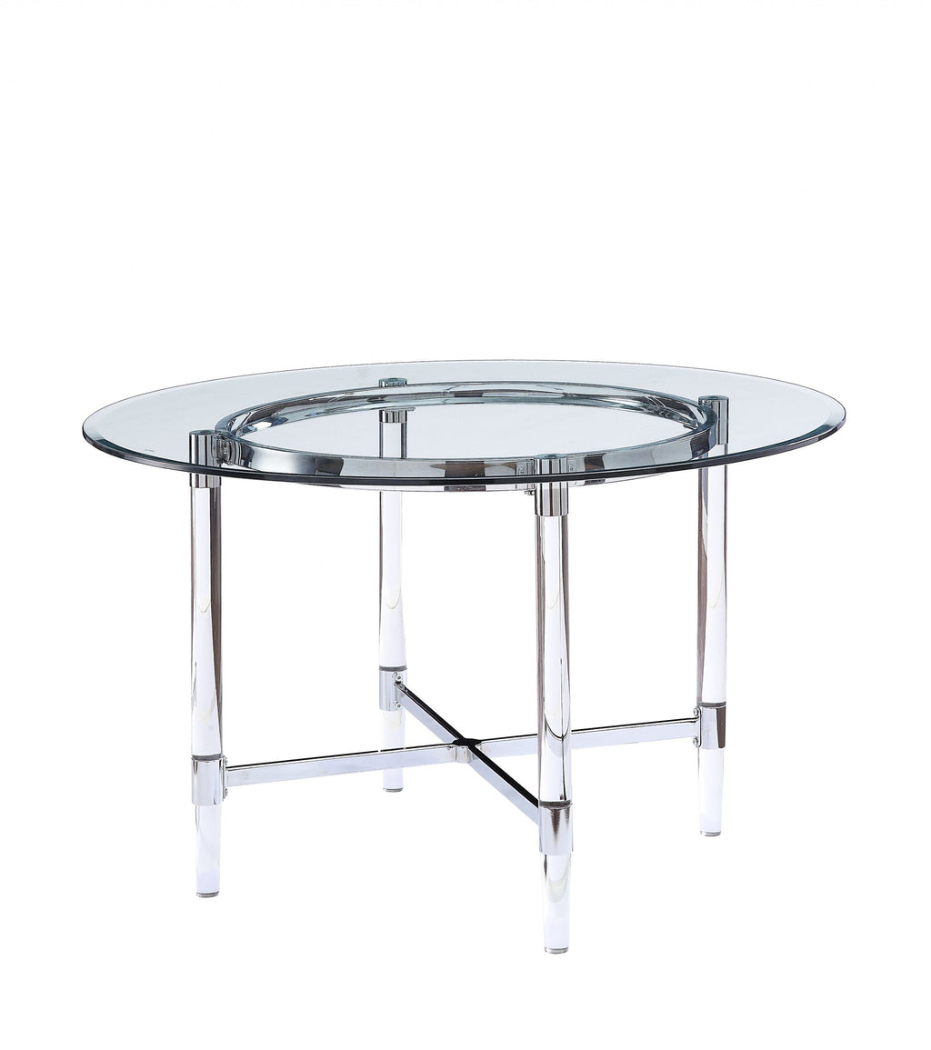 48" X 48" X 30" Chrome Clear Glass Acrylic Metal Dining Table