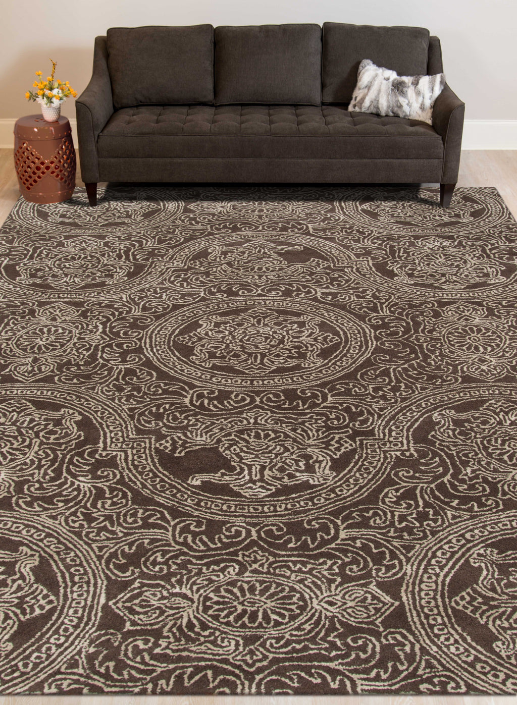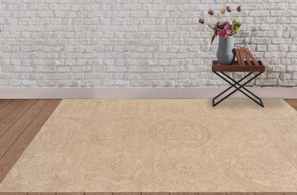 7.6" X9.6" X 0.5" Beige Wool Area Rug