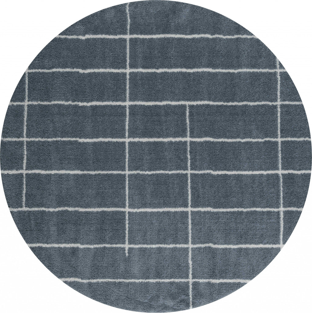 94" x 94" Blue / Grey Microfiber Polyester Round Rug