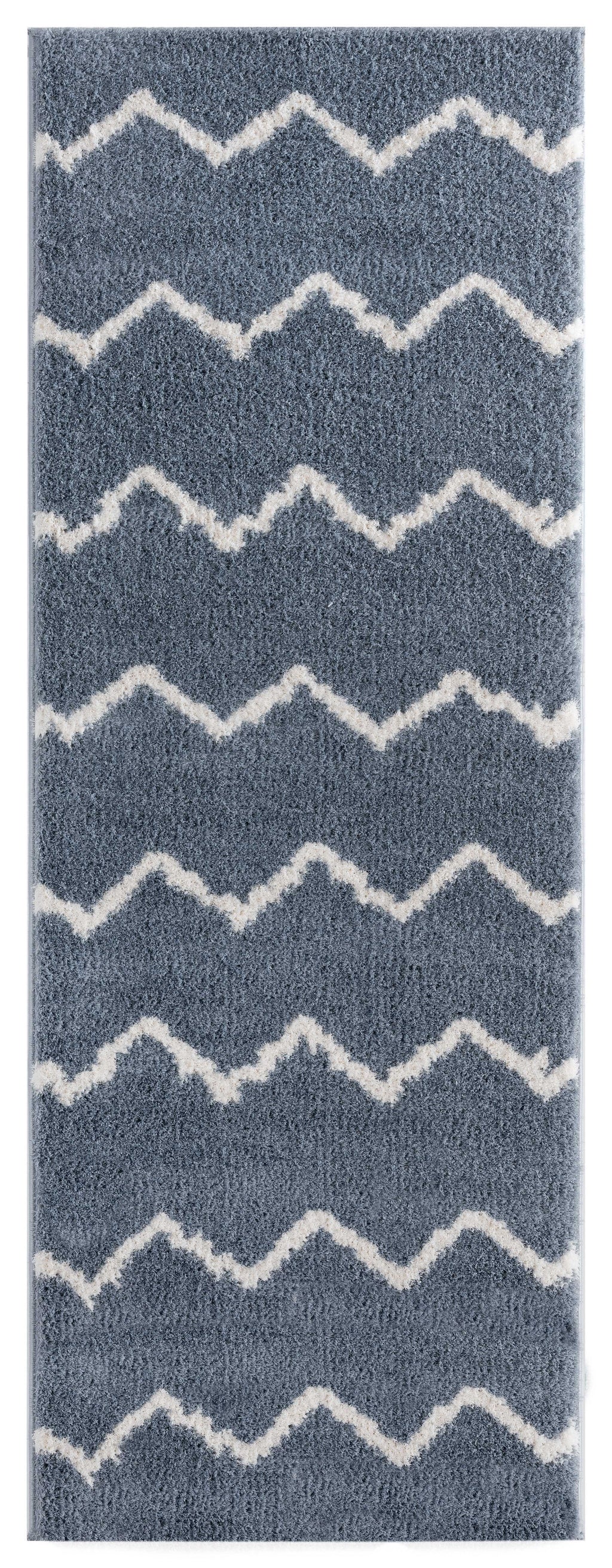 31" x 86" Blue / Grey Microfiber Polyester Runner Rug