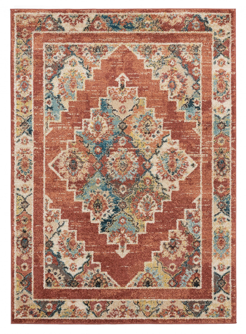 63" x 86" Multicolor Olefin Frieze Area Rug