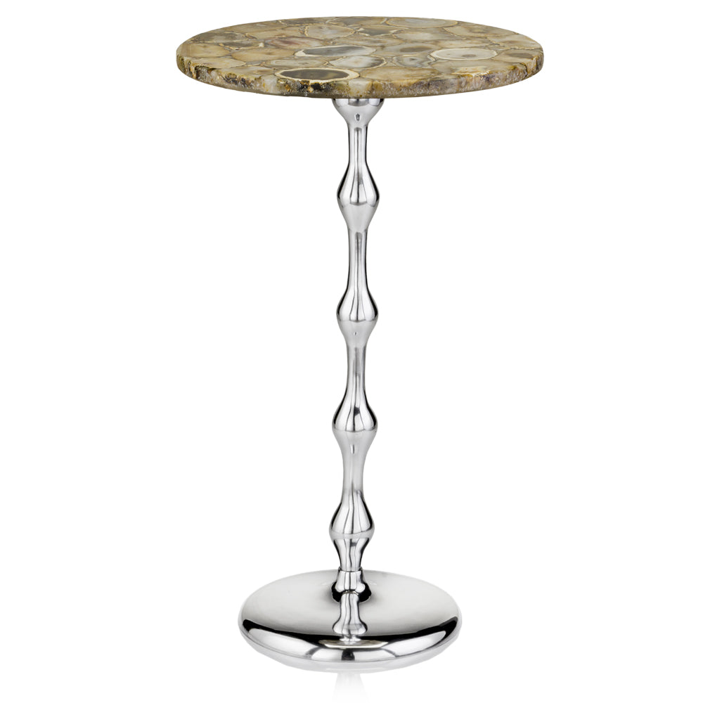 16" x 16" x 27" Buffed Tan Tall Side Table with Agate Top