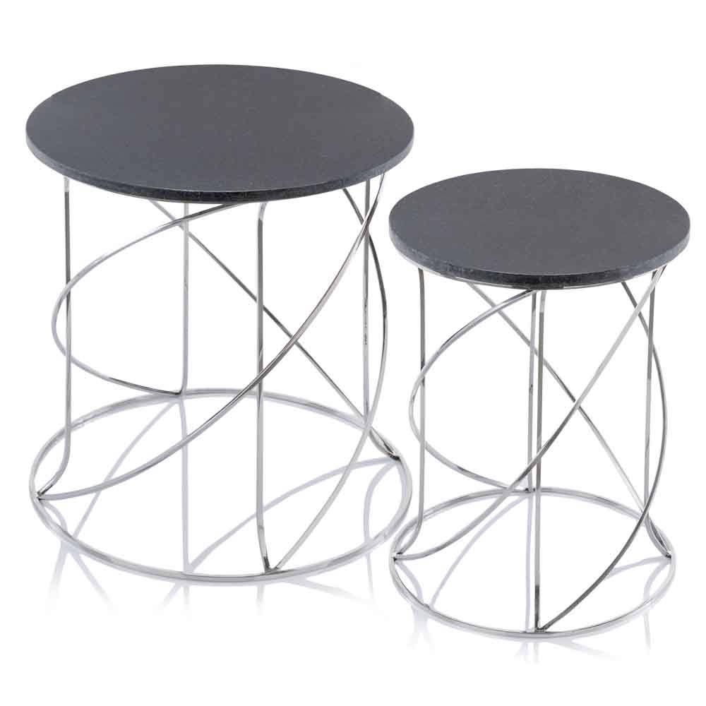 18" x 18" x 20.5" Buffed Black Nested Marble Tables Set of 2