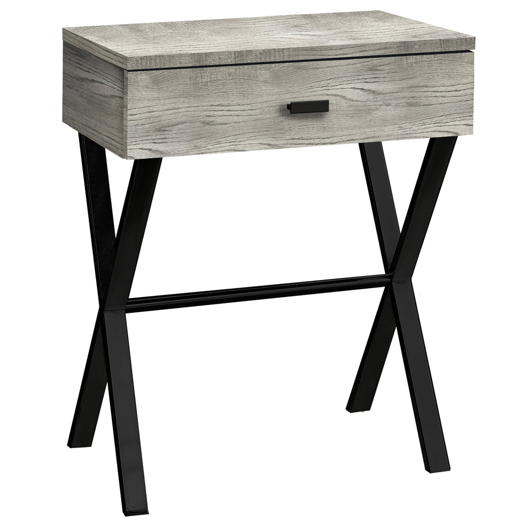 12" x 18.25" x 22.25" Grey Finish and Black Metal Accent Table