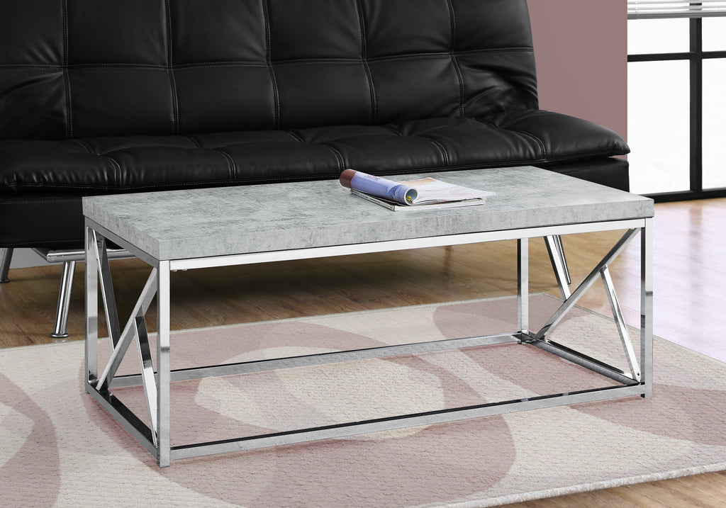 17" Grey Cement Particle Board Laminate and Chrome Metal Coffee Table