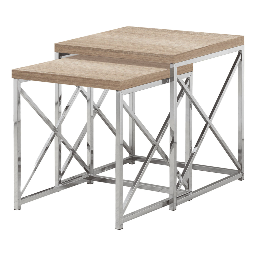 37.25" x 37.25" x 40.5" Natural Particle Board Metal 2pcs Nesting Table Set
