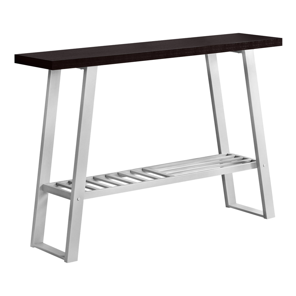 12" x 47.25" x 32" Cappuccino Finish and Silver Metal Hall Console Accent Table