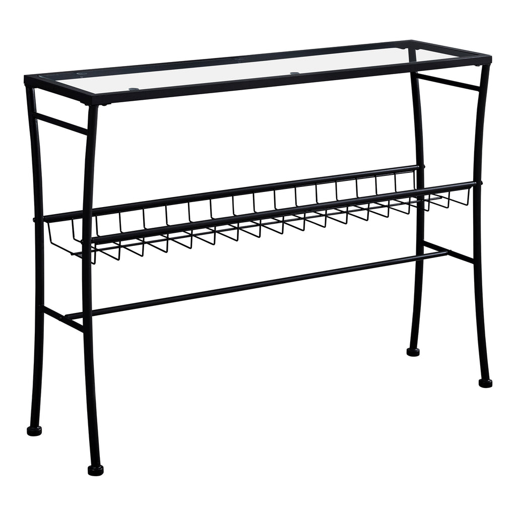 12" x 41.75" x 32" Black Clear Metal Tempered Glass Accent Table