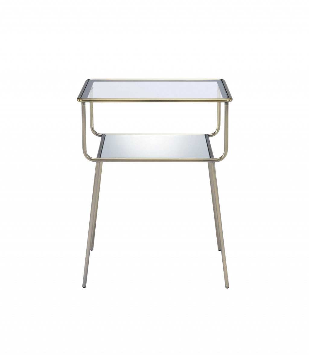 24" X 24" X 24" Brushed Copper And Clear Glass End Table