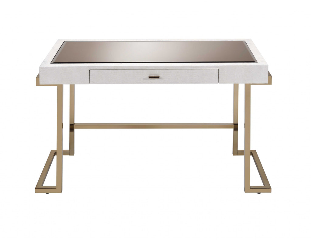 54" X 22" X 31" White And Chrome Glossy Polyester Desk