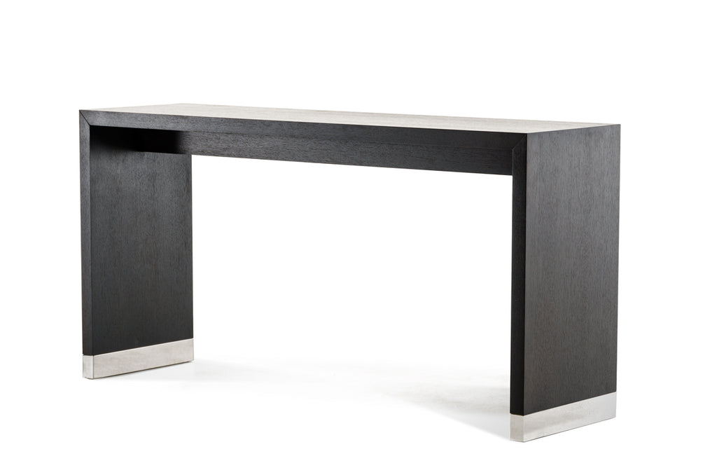 30" Grey Brush Veneer and Stainless Steel Dining Table