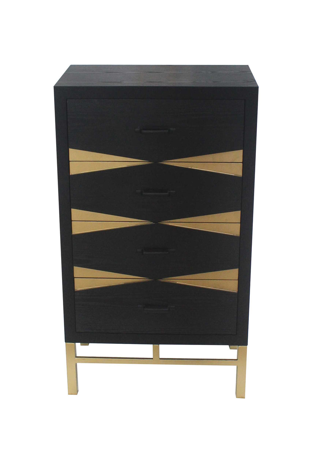 14" x 23" x 40" Black & Gold 4 Drawer Side Table