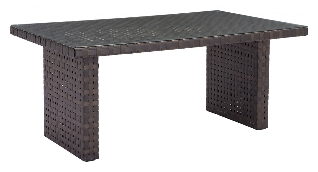 67.3" x 39.4" x 29" Brown, Tempered Glass, Synthetic Weave, Aluminum, Dining Table
