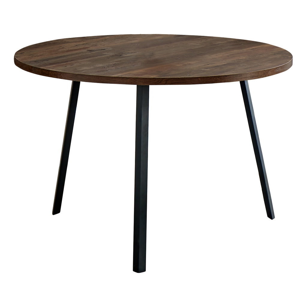 48" Round Dining Room Table with Brown Reclaimed Wood and Black Metal