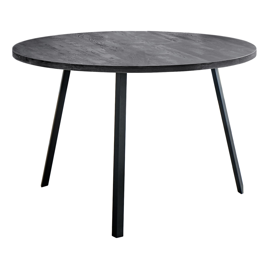 48" Round Dining Room Table with Black Reclaimed Wood and Black Metal