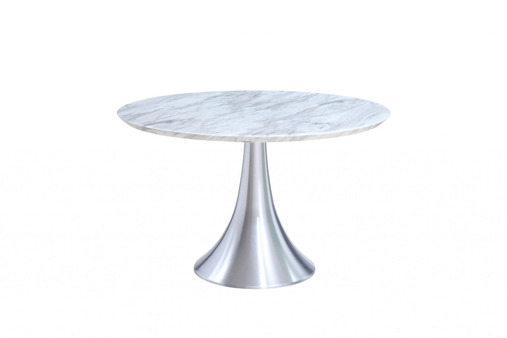 43" X 43" X 30" White Marble Stainless Steel Round Dining Table