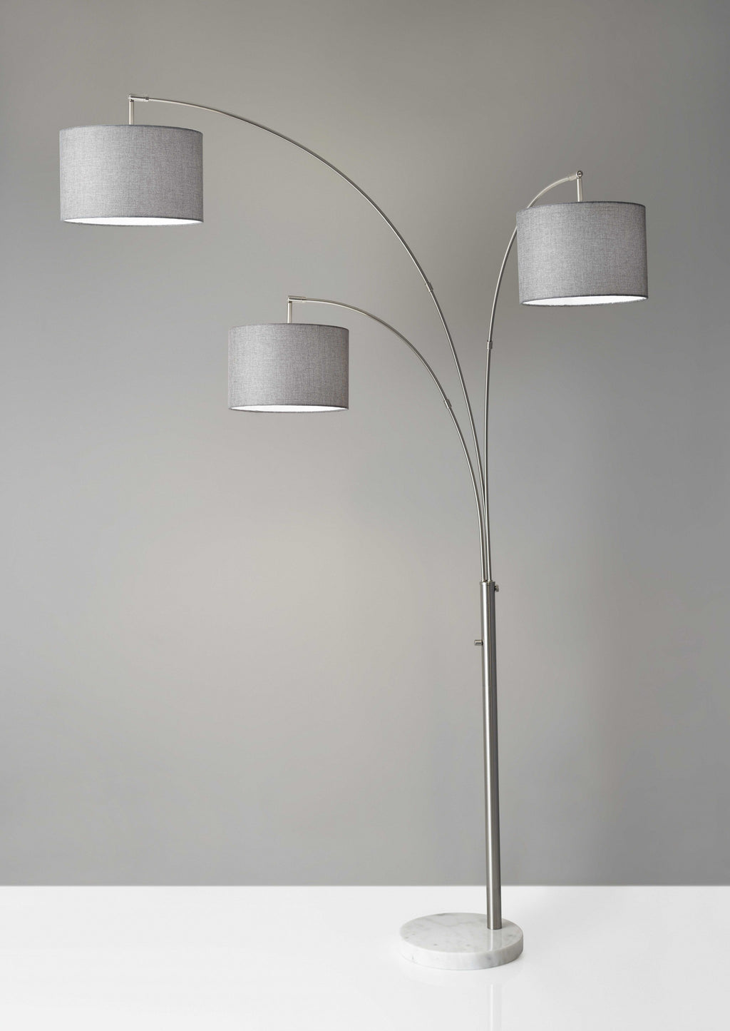 35" X 52" X 74" Brushed Steel Metal 3-Arm Arc Lamp