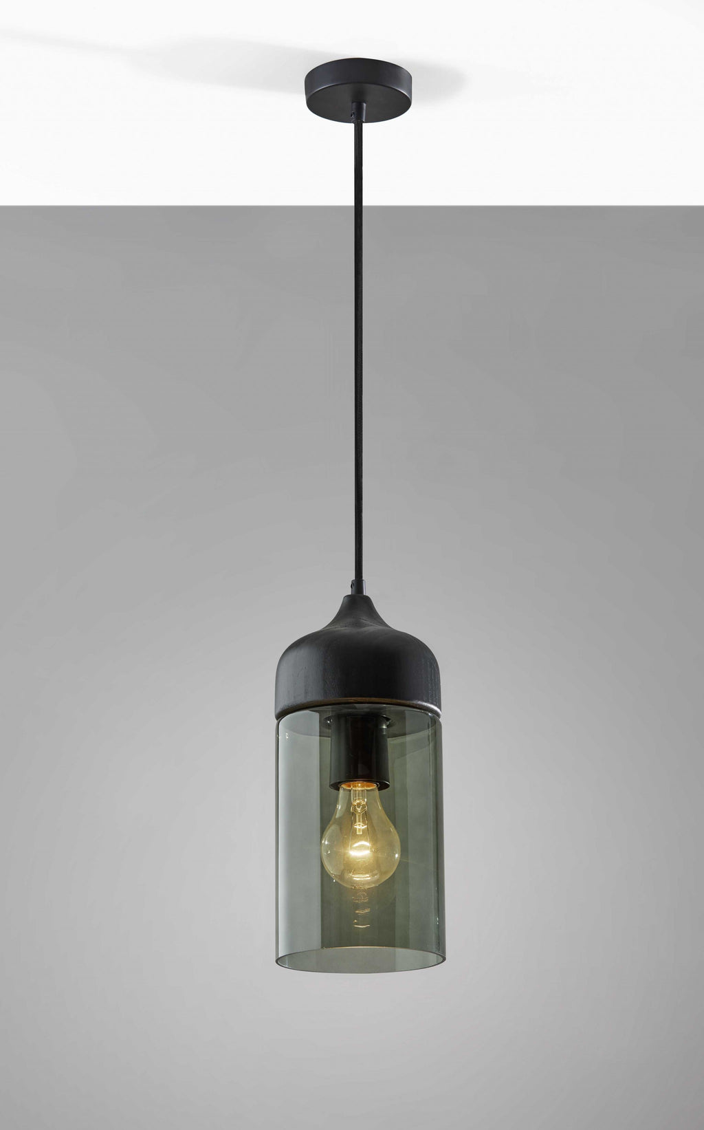 5" X 5" X 11.25" Black Wood Glass Pendant