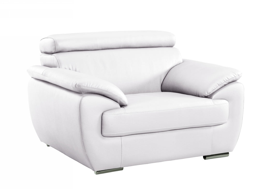 Chair White Top Grain Italian Leather Stainless Steel Legs.