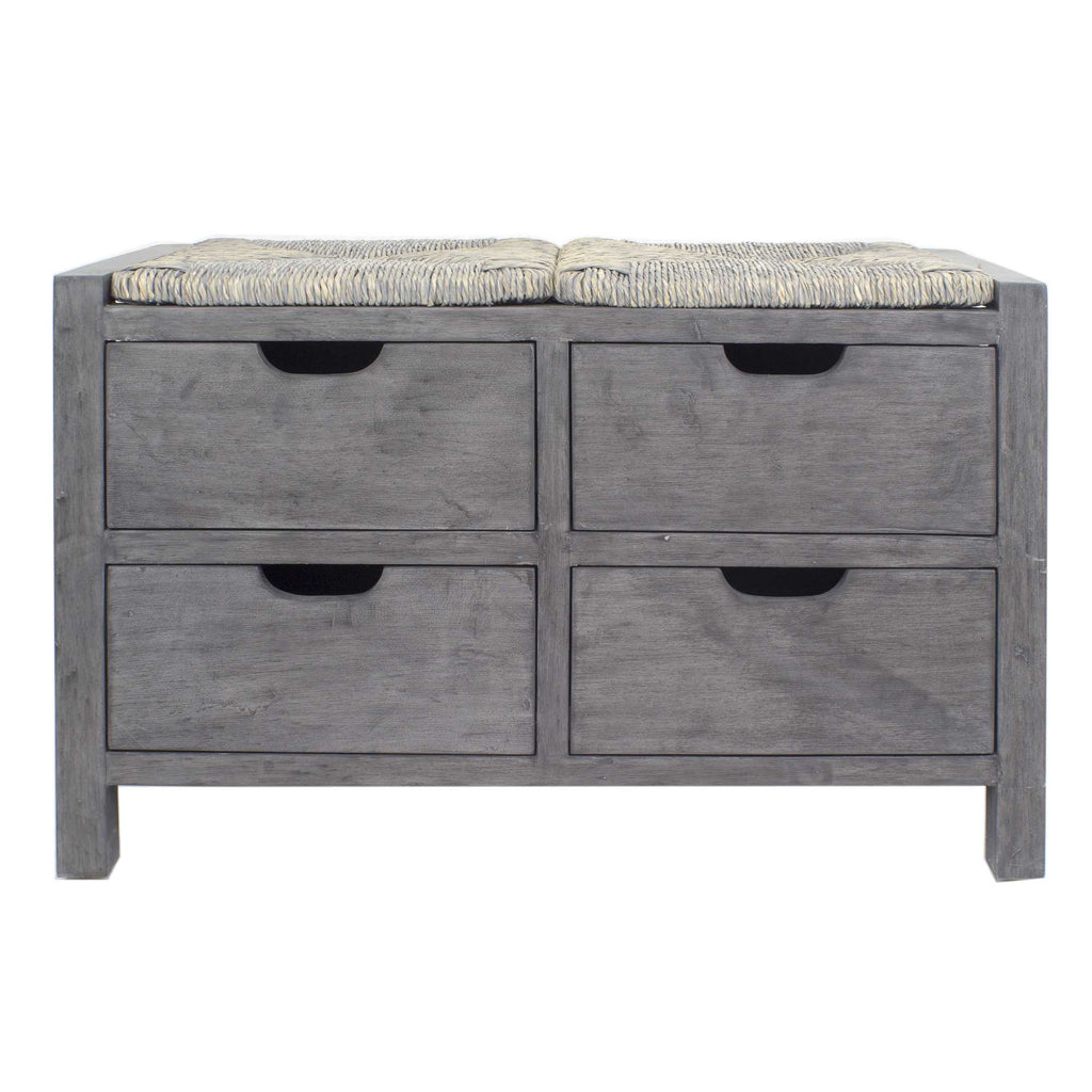 33.5" X 15.75" X 20" Grey MDF Wood Seagrass Drawer Storage Bench