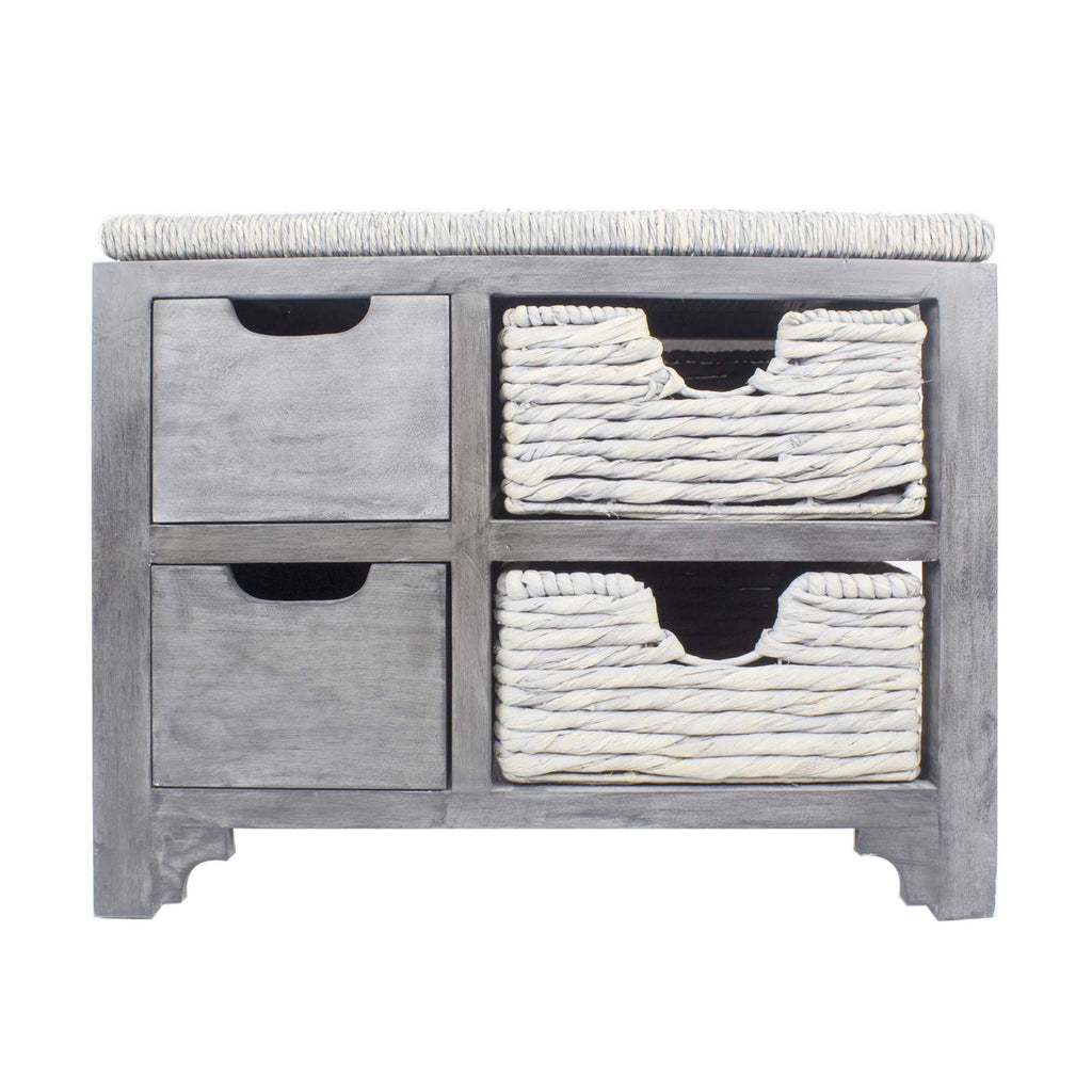 24.75" X 17" X 20" Grey MDF Wood Water Hyacinth Water Hyacinth Drawer Basket Storage Bench