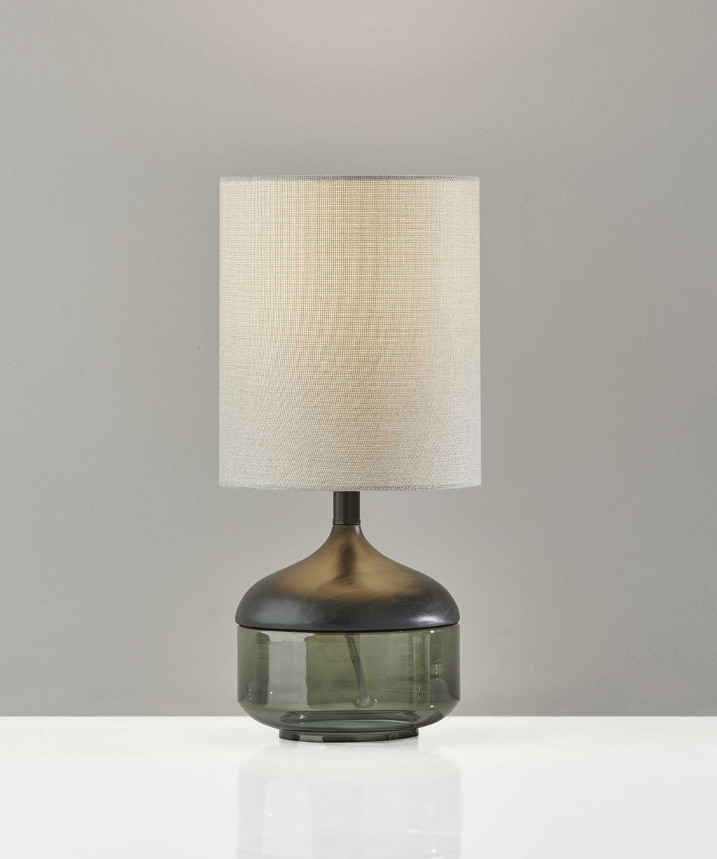 7.5" X 7.5" X 16.25" Black Wood Glass Table Lamp