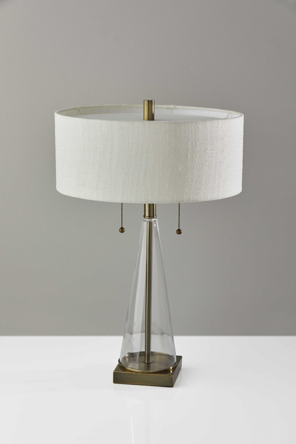 14" X 14" X 24" Natural Glass Metal Tapered Table Lamp
