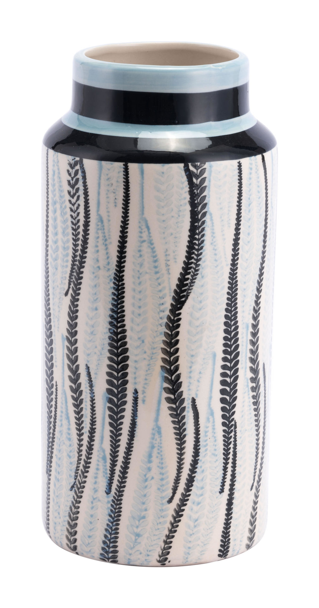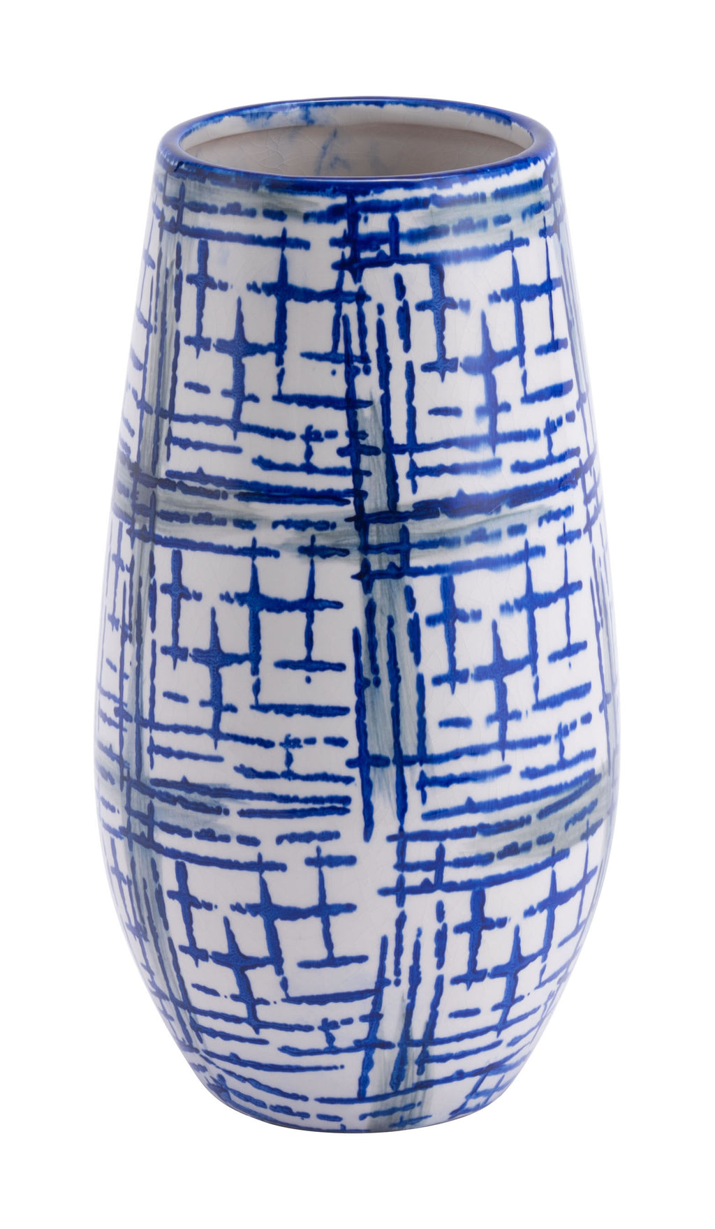 6.5" x 6.5" x 12.2" Blue & White, Ceramic, Medium Vase