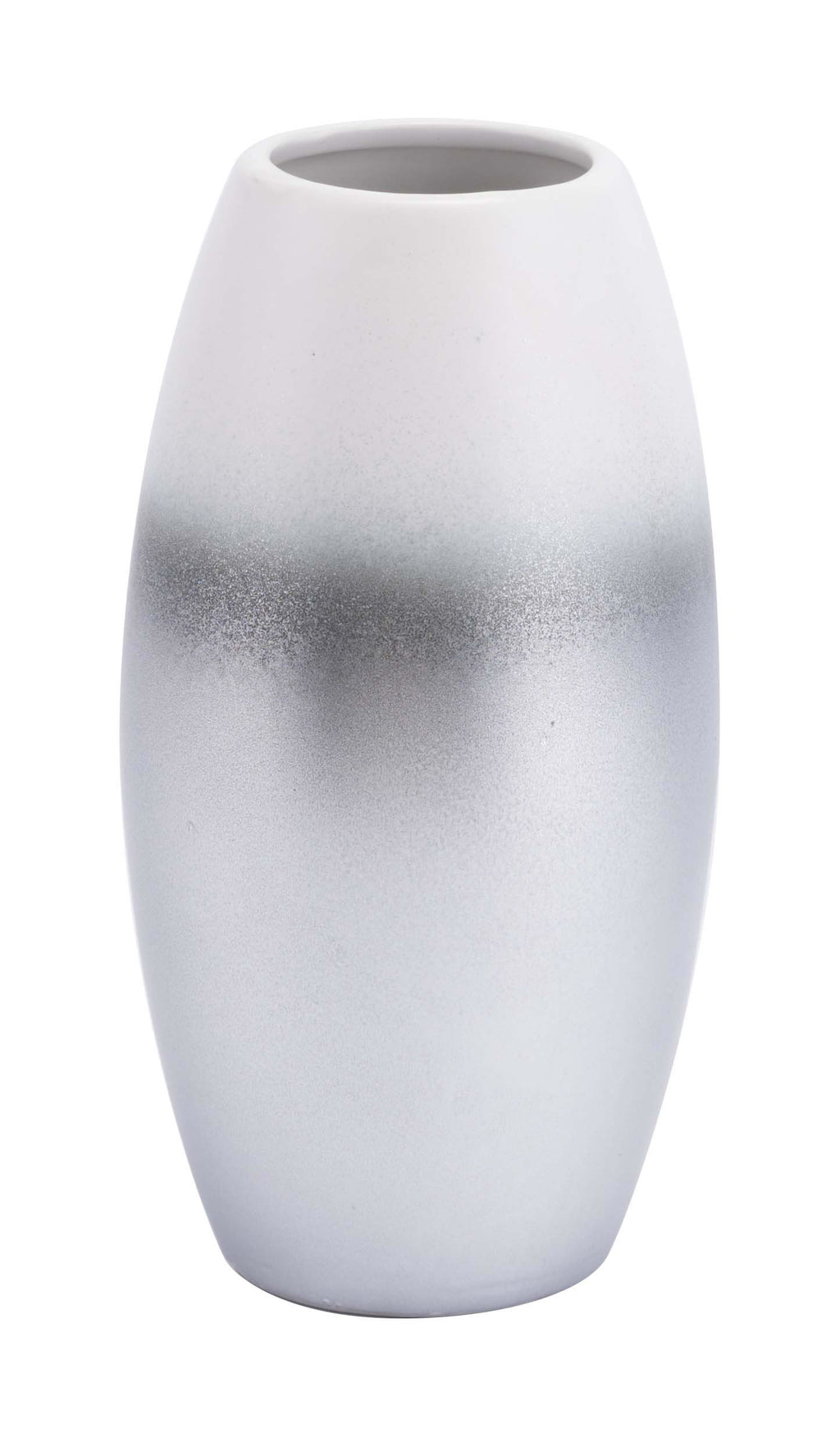5.9" x 5.9" x 15.6" Silver & White, Ceramic, Medium Vase
