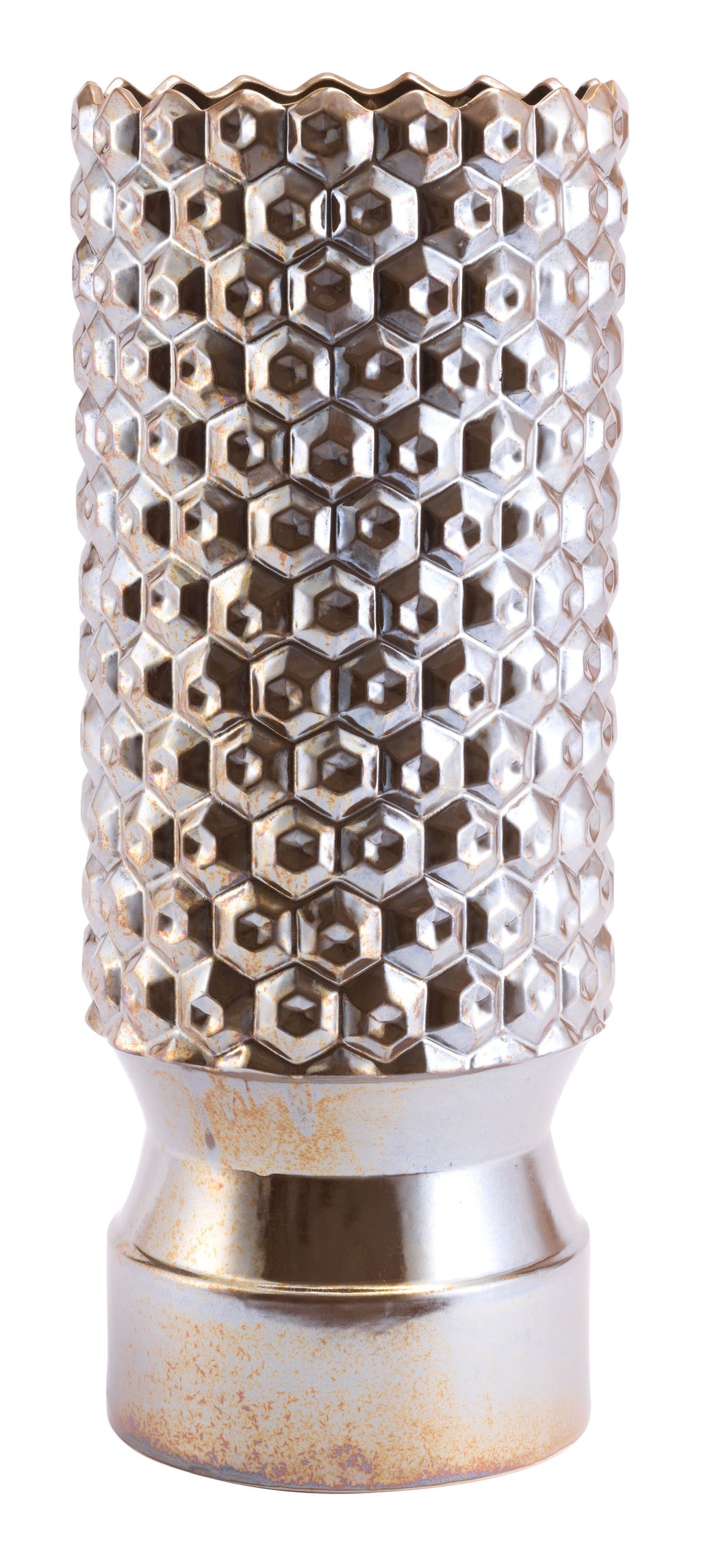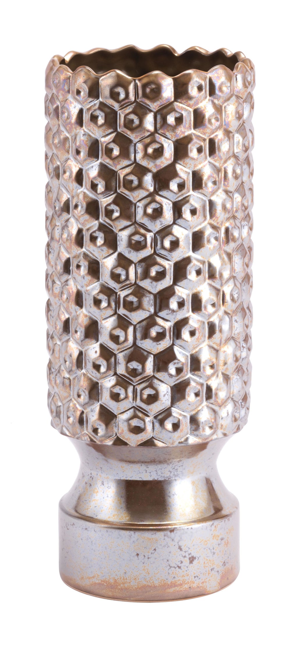 6.3" x 6.3" x 16.1" Antique Gold, Ceramic, Small Vase
