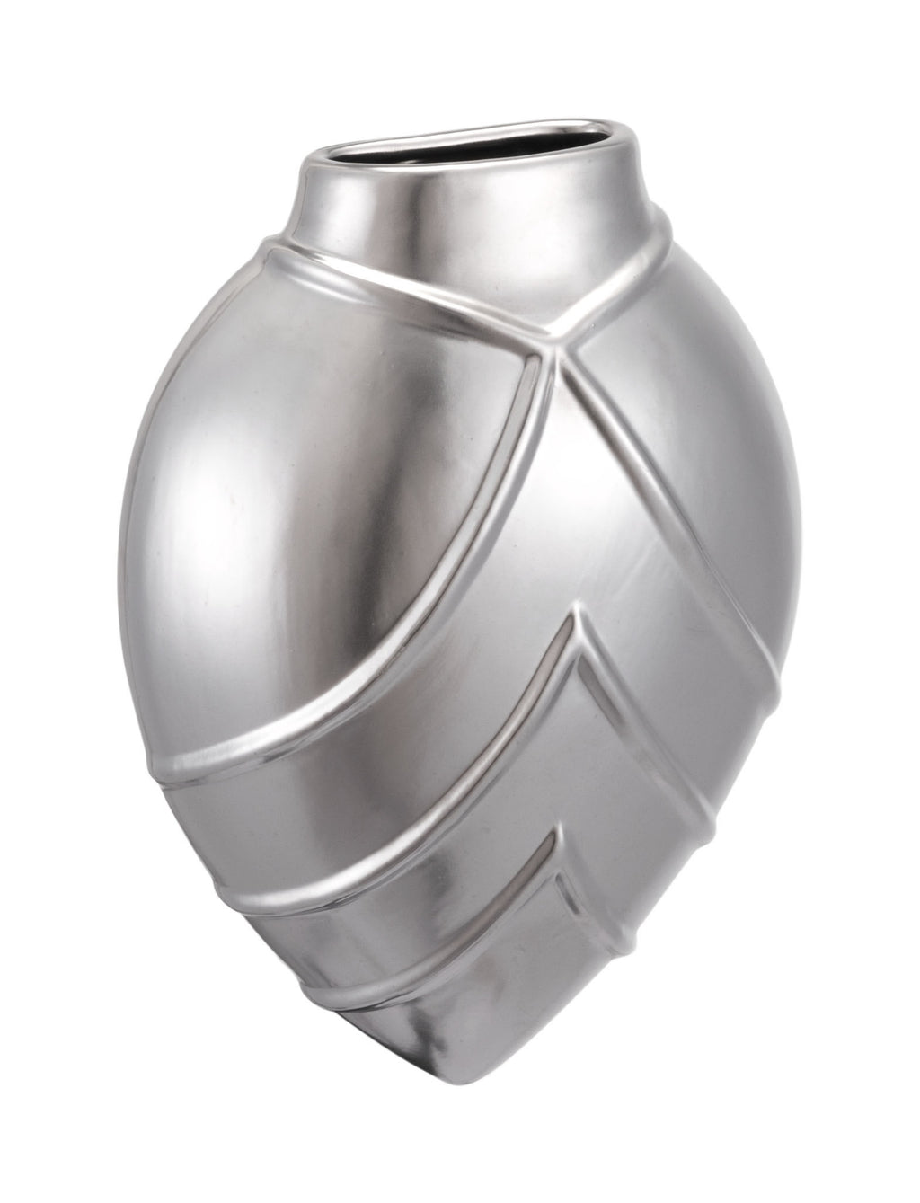 2.8" x 6.1" x 8.1" Matte Silver, Stoneware, Rayas Wall Vase