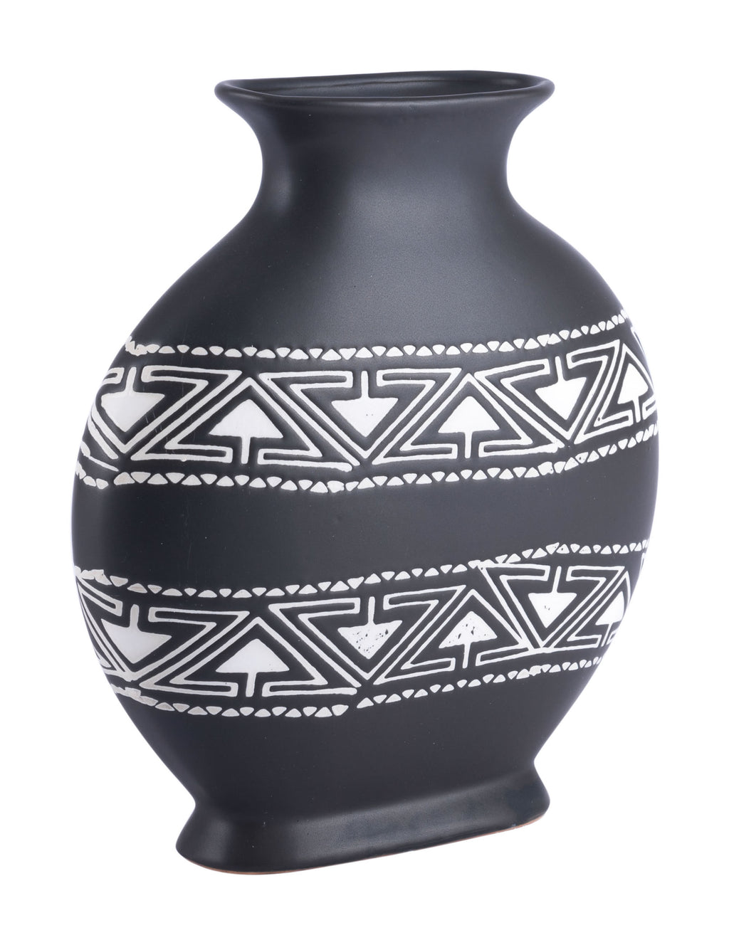11" x 3.9" x 11.6" Black & White, Ceramic, Medium Vase
