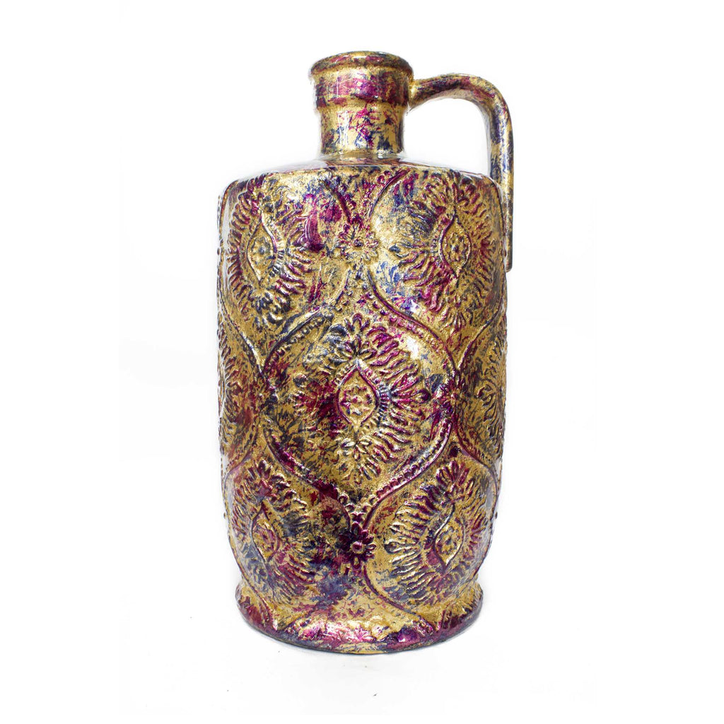 Amber Pink and Purple Foil and Lacquer Damask Stamped Jug Vase