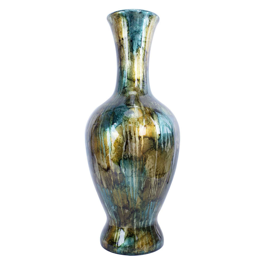 9" X 6.25" X 18.5" Brown Green Copper Gold Ceramic Lacquered Modern Vase