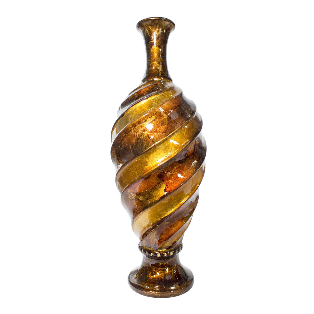 Swirl Copper Brown and Amber Ceramic Foil and Lacquer Bud Vase
