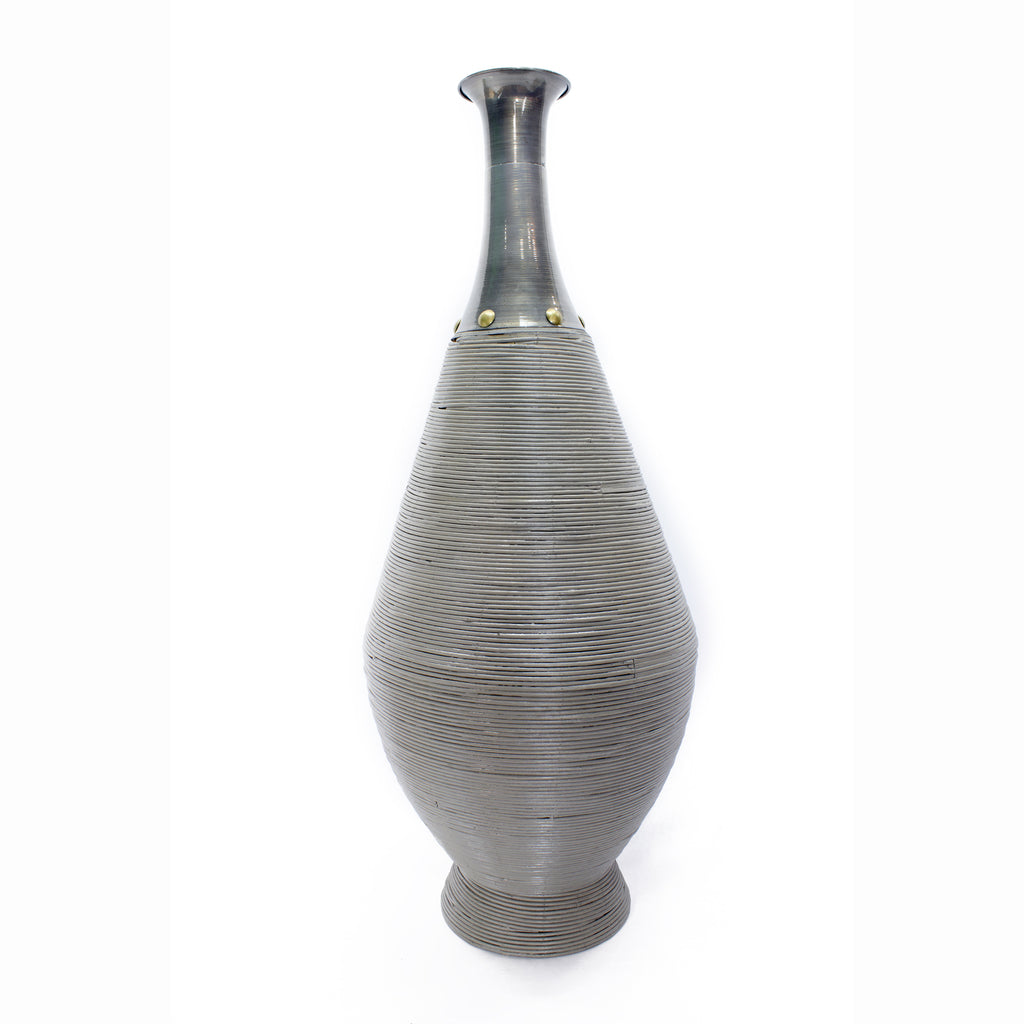 14" X 14" X 29.5" Champagne Bamboo Metal Vase with a Band