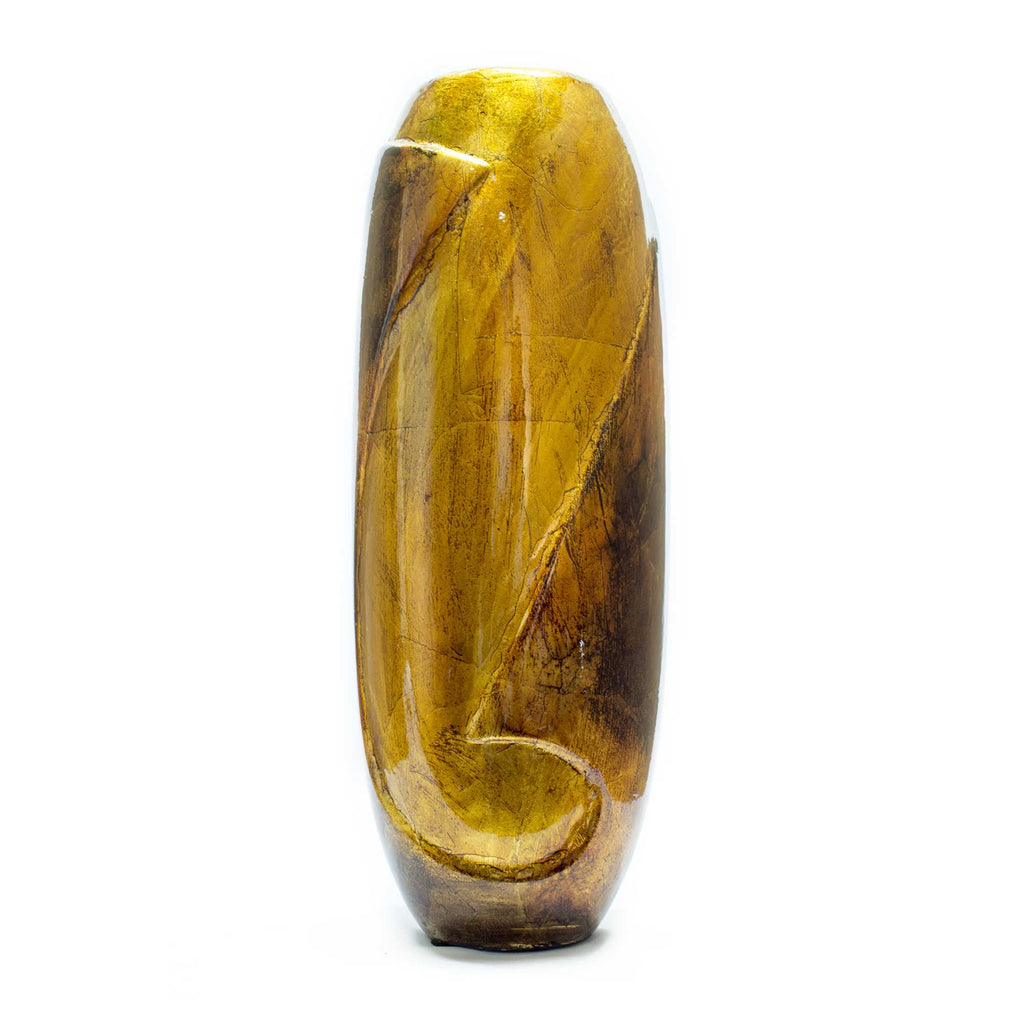 8.5" X 4.25" X 14" Gold Copper Brown Ceramic Table Vase