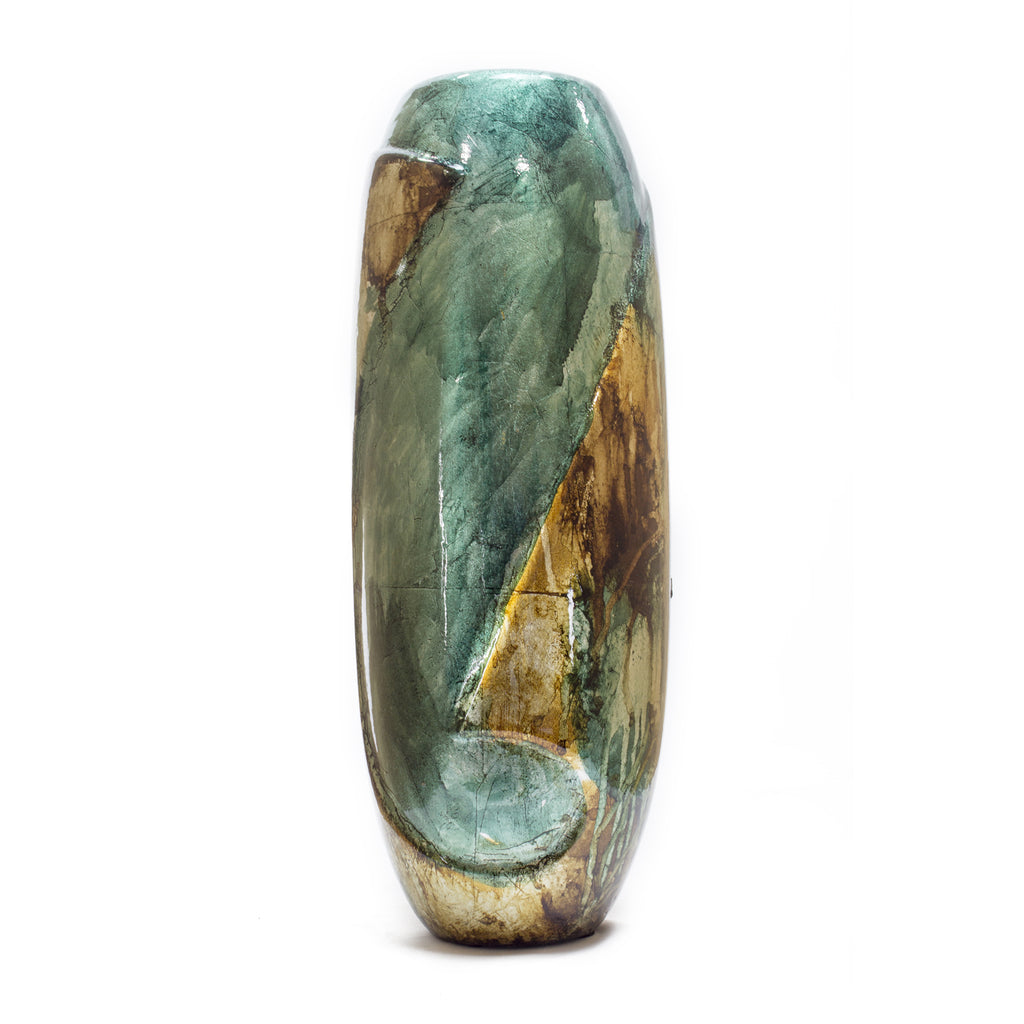 8.5" X 4.25" X 14" Turquoise Copper and Bronze Ceramic Table Vase