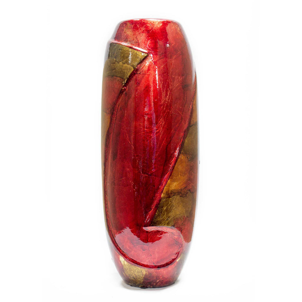 8.5" X 4.25" X 14" Copper Red and Gold Ceramic Table Vase