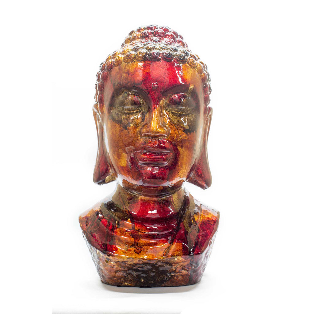 7" X 5.5" X 13" Gold Copper Brown Ceramic Buddha Head Decorative Sculpture