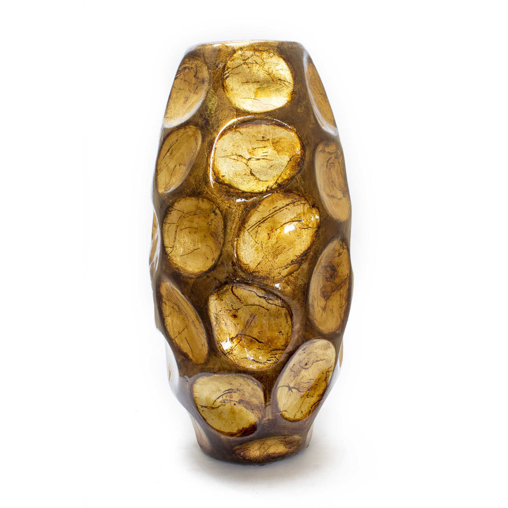 9" X 9" X 14" Gold Copper Brown Ceramic Table Vase