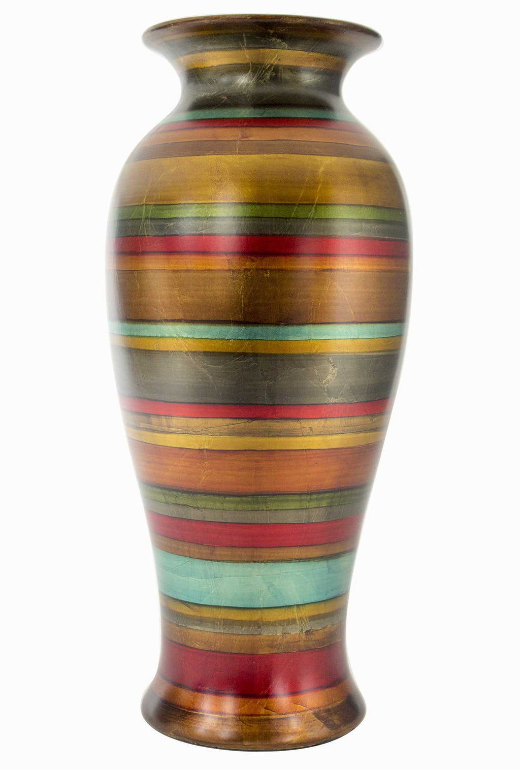13" X 13" X 25" Brown, Red And Gray Ceramic Foiled & Lacquered Ceramic Vase