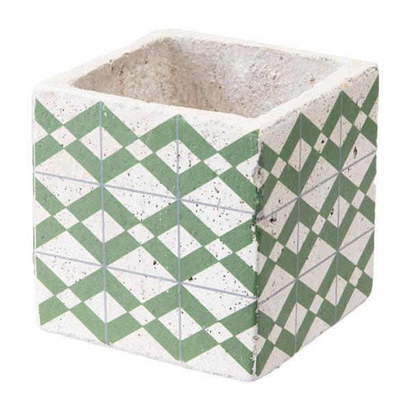 4.9" X 4.9" X 4.9" Green And Yellow Cement Tribal Planter